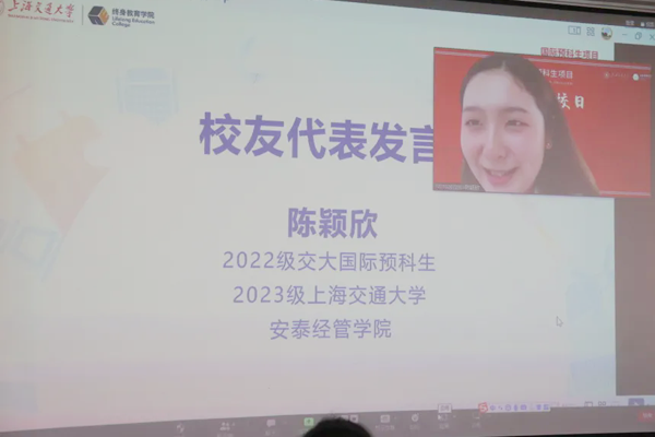 国际教育运行中心国际交流办公室主管李园园老师也作了主题为“校友力量”的发言。她指出,交大国际预科的规模在疫情期间逆势增长,并且保持着超高的学生满意度和显著的升学成果,这一切都得益于校友的力量。传承校友文化,发扬校友精神,交大国际预科与校友将一路同行,共创佳绩。